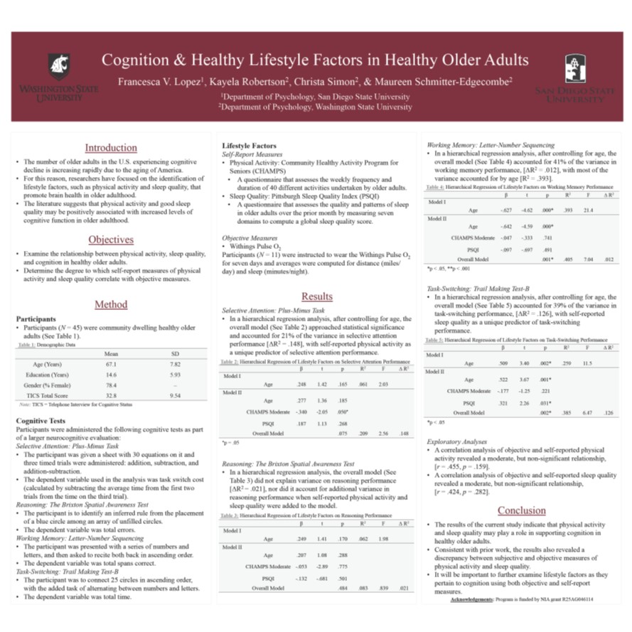 This program is funded by NIA grant R25AG046114 and is carried out as a collaborative effort between the Center for Advanced Studies in Adaptive Systems (CASAS) and the Department of Psychology at Washington State University.