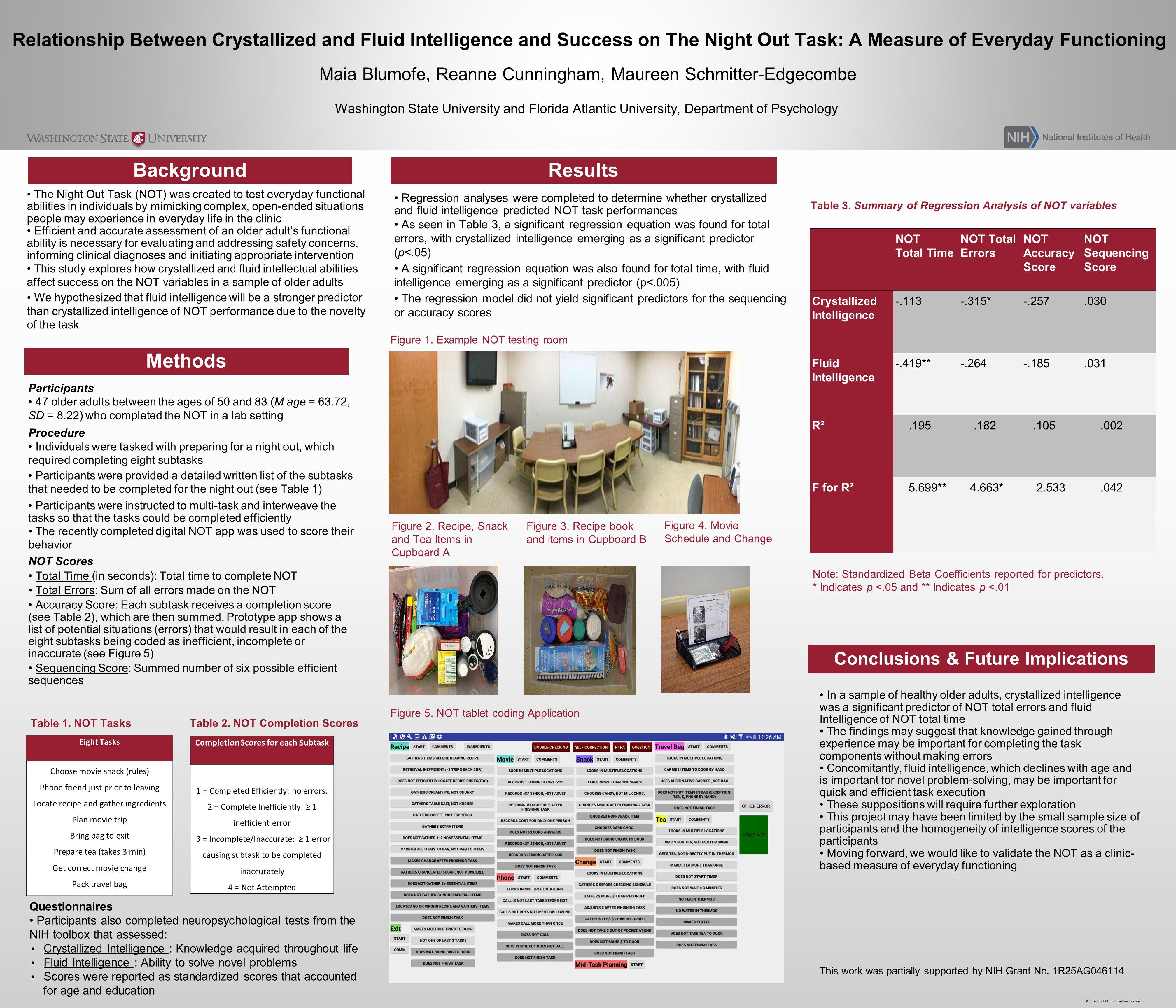 Project: Relationship Between Crystallized and Fluid Intelligence and Success on the Night Out Task: A Measure of Everyday Functioning