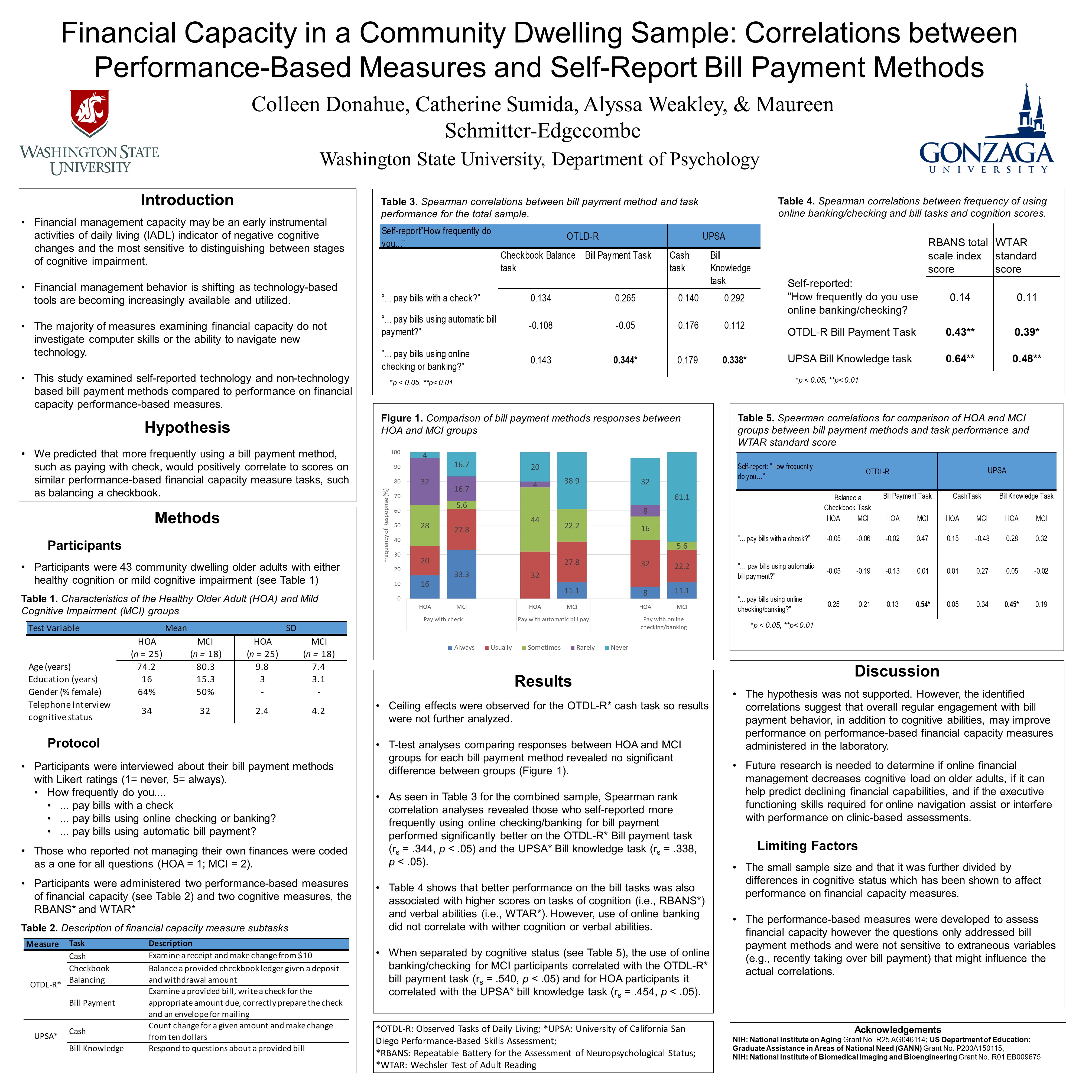 Project: Financial Capacity in a Community Dwelling Sample: Correlations between Performance-Based Measures and Self-Report Bill Payment Methods